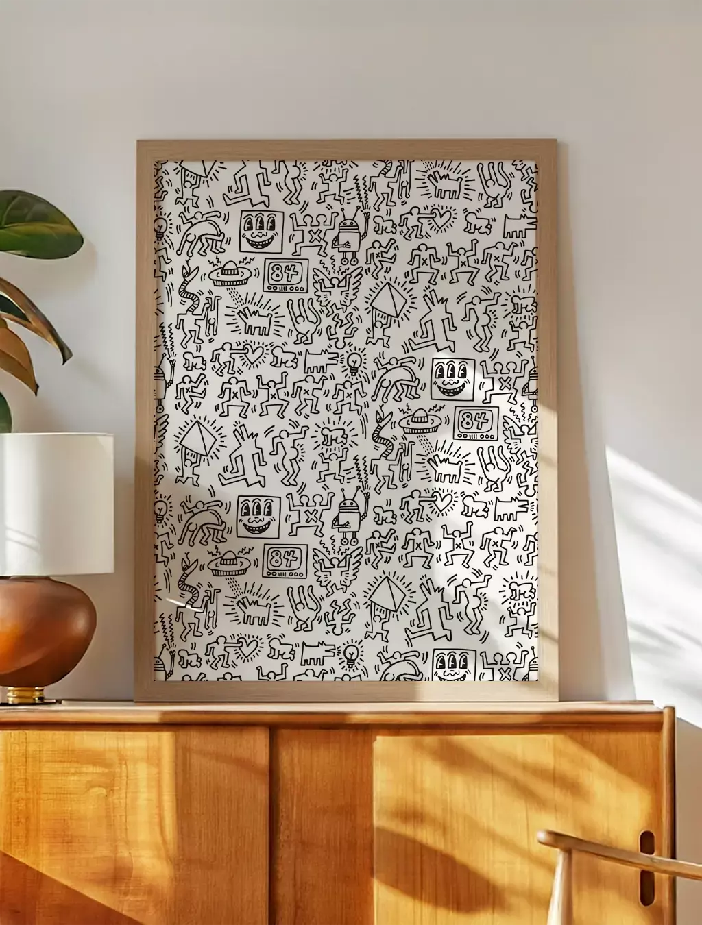 Keith Haring fue un popular artista y activista que formó parte de la legendaria escena artística de Nueva York durante la década de 1980. Si bien es conocido por su estilo engañosamente simple, la energía y el optimismo de su arte, con sus líneas atrevidas y colores brillantes, ellas respondían a acontecimientos sociales y políticos contemporáneos.Como la batalla para poner fin a la segregación racial, la concienciación sobre el SIDA y el abuso de drogas.